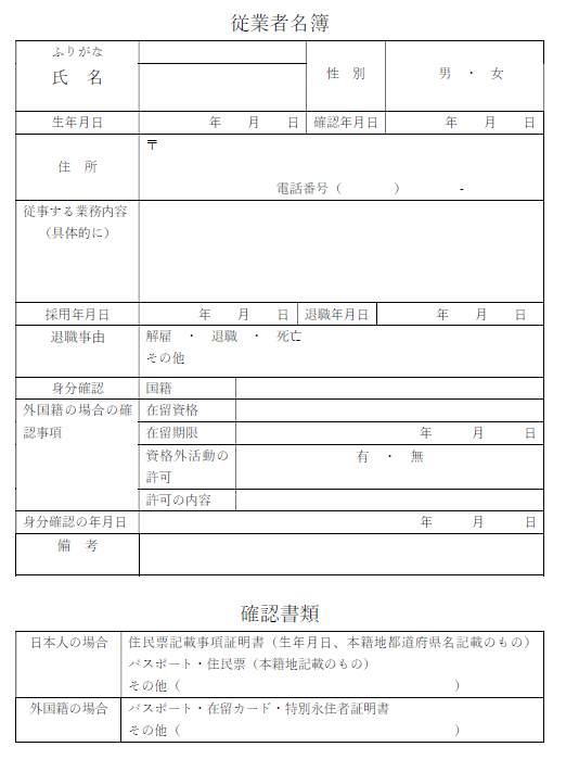 従業員を雇用する場合(アルバイトを含む)は従業員名簿を作成する必要があります。警察の立ち入り検査の際には必ずチェックされます。